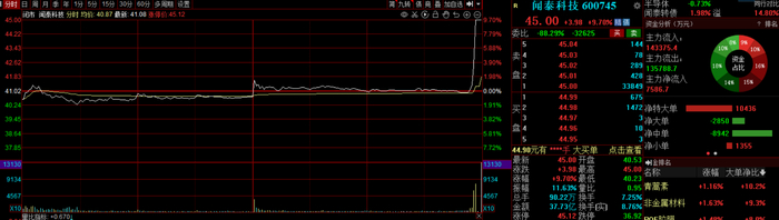 个股方面,闻泰科技尾盘直线拉升,股价逼近涨停。