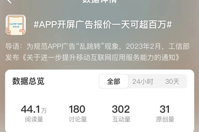 比如,最近有个话题冲上热搜,即APP开屏广告报价一天最高可达百万,这什么概念?人家一年只要投放三个月,就能搞一个小目标,而且还都是净利润,谁不眼馋?